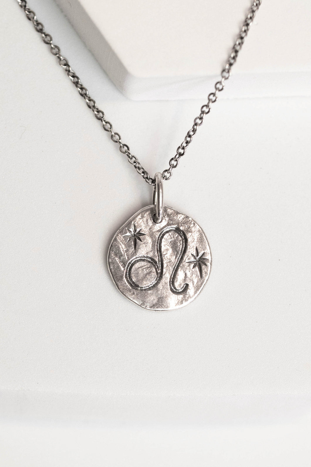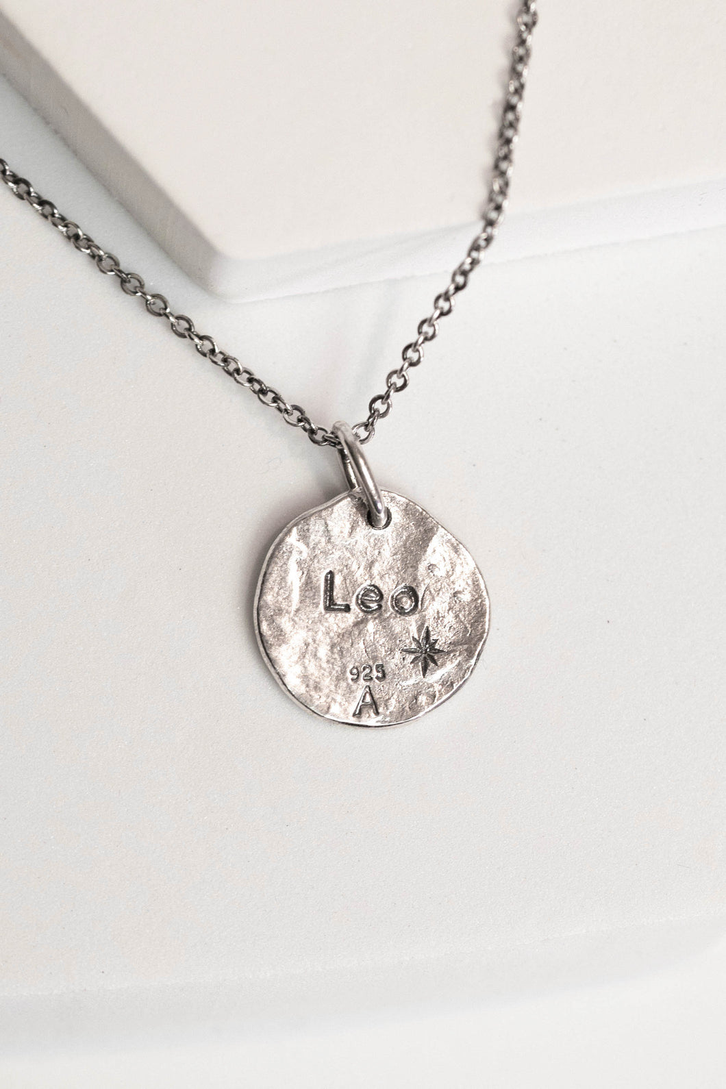 In radiant .925 sterling silver, the Leo glyph gleams with the pride of the sun, framed by two stars that shine like a crown.