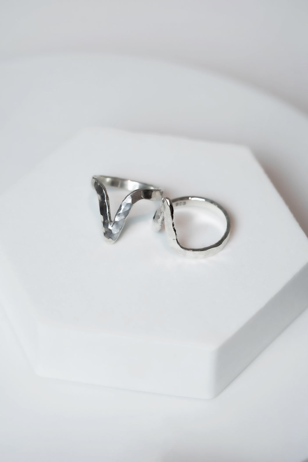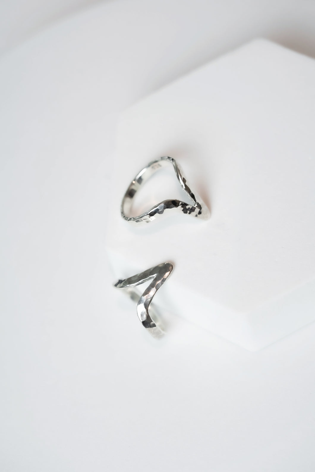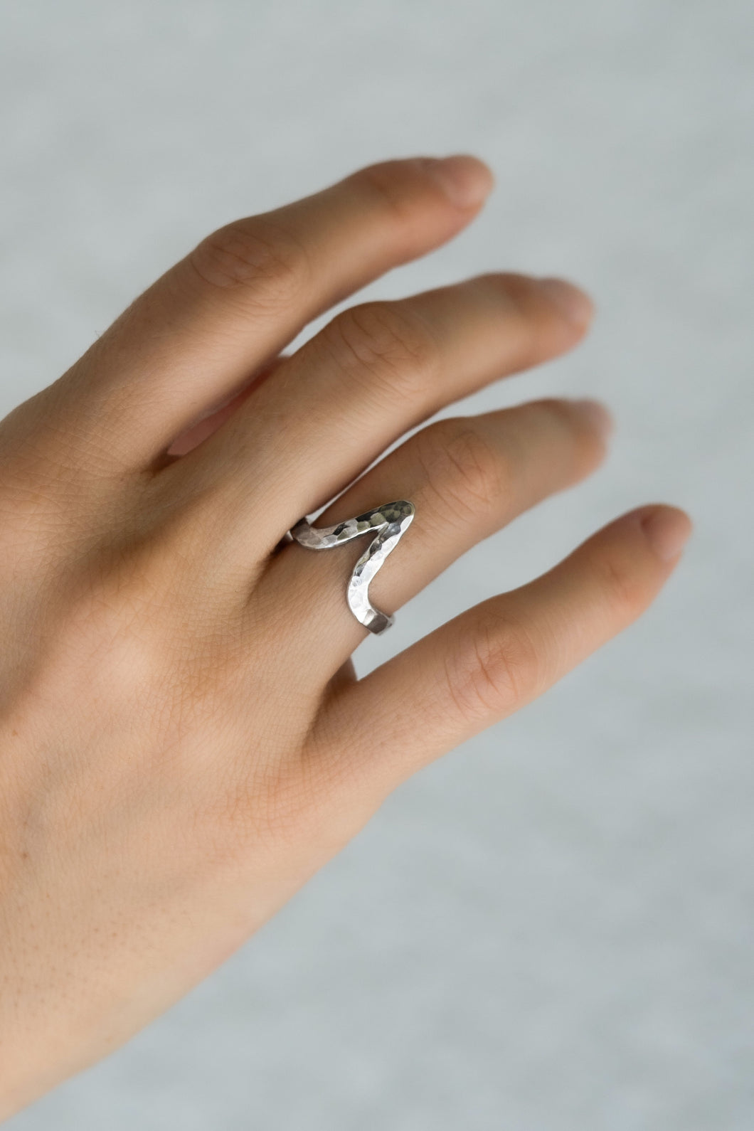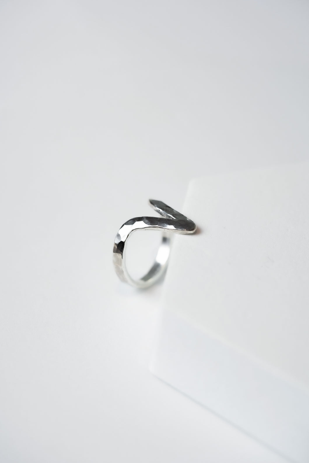 A delicate lightning ring is crafted from premium .925 sterling silver, emblazoned with our imperfect signature hammer-finished surface.